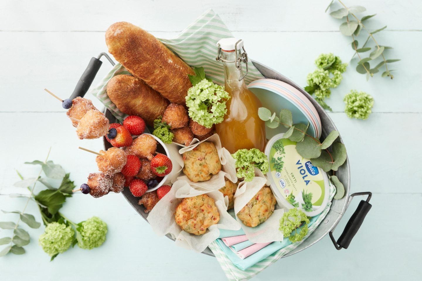 Parhaat piknik-eväät ovat helppoja, nopeita ja kätevästi mukana kulkevia. Kokoa ihana piknik-kori pienellä vaivalla valmistuvista salaateista, voileivistä, pienistä naposteltavista, makeista herkuista ja raikkaista piknik-juomista.